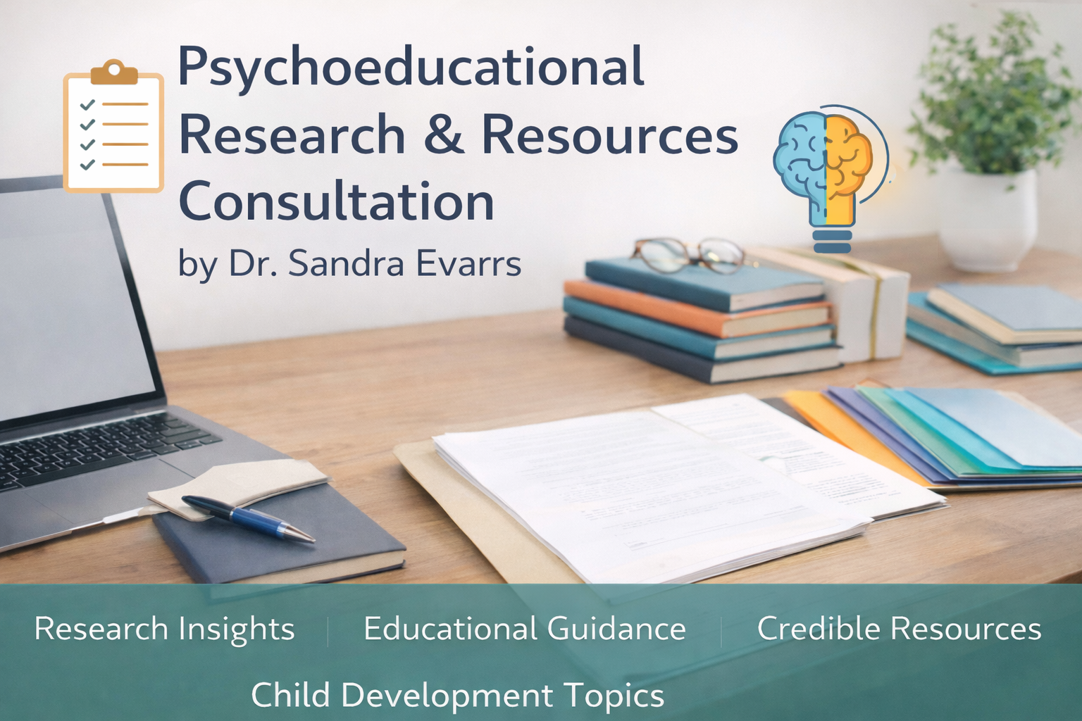 This consultation is ideal for those seeking direction in learning more about a specific psycheducation topic — whether that means identifying credible sources, learning how conditions are studied, or gaining a clearer understanding of how different areas of child development and learning are commonly discussed within the field.